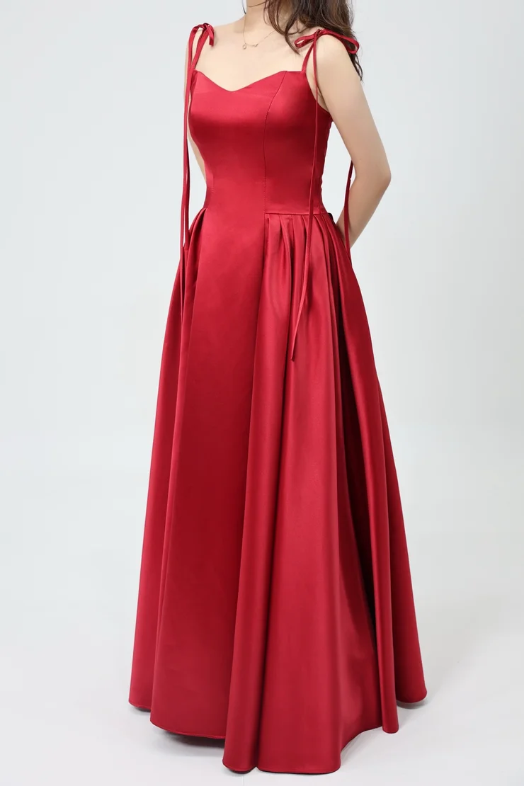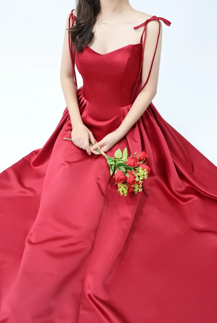 강렬한 레드 컬러가 돋보이는 A라인 드레스입니다.