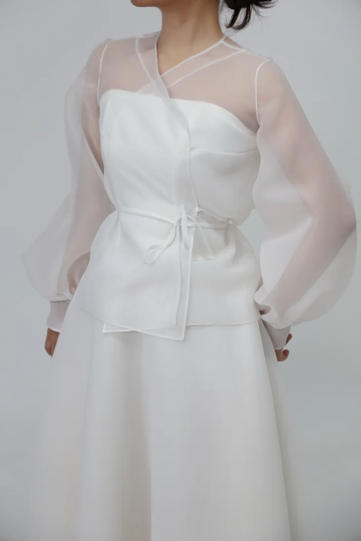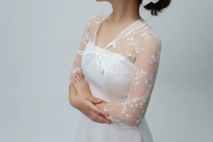 볼레로를 더하면 다양한 스타일 연출이 가능해 취향과 촬영 분위기에 맞게 변화를 줄 수 있습니다.