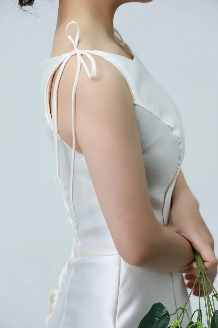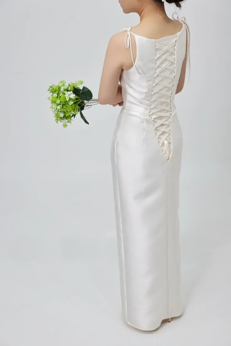 고급스러운 미카도 실크 소재로 제작된 드레스입니다.