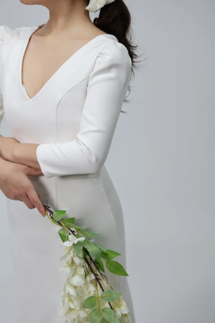 차르르 흐르는 듯한 텍스처가 특징인 도비실크 소재로 완성된 머메이드 드레스입니다.