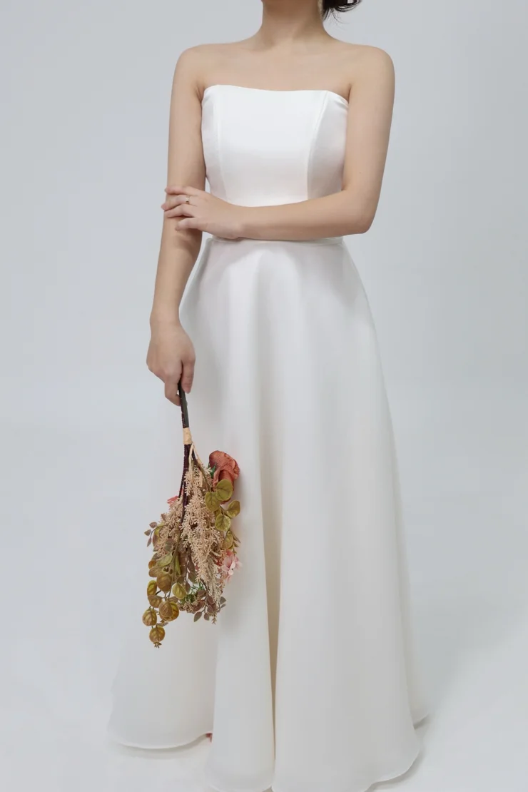 심플하면서도 소재와 라인 덕분에 2부 또는 셀프 스튜디오 촬영, 기념일 등 격식 있는 자리에 완벽하게 어울립니다.
