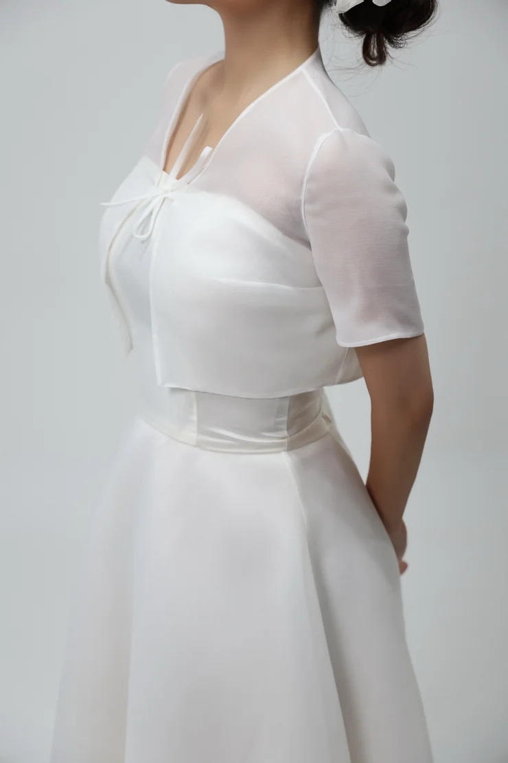 볼레로를 더하면 다양한 스타일 연출이 가능해 취향과 촬영 분위기에 맞게 변화를 줄 수 있습니다.