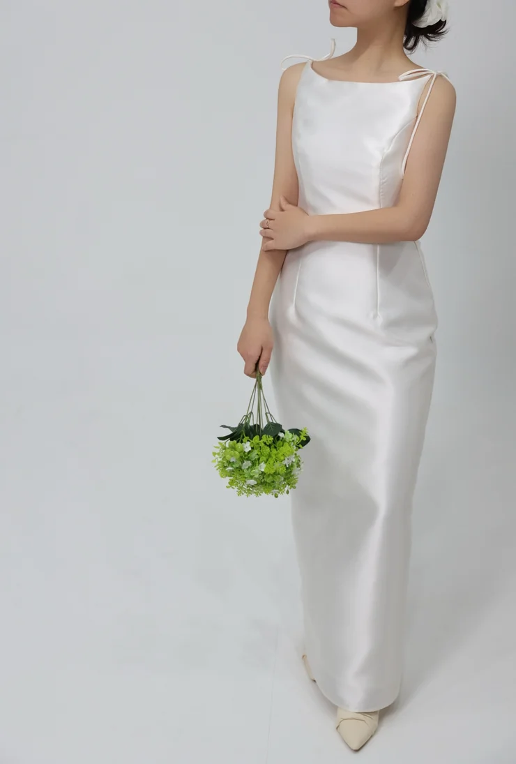 고급스러운 미카도 실크 소재로 제작된 드레스입니다.